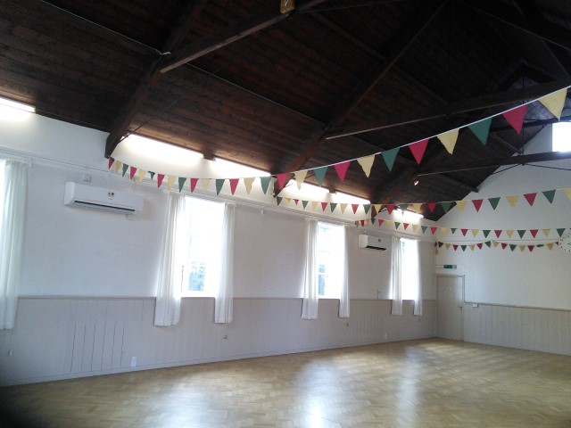 Kilve Village Hall, Kilve Nr Bridgewater Somerset is a Victorian building with a floor space of about 110m2 and ceiling heigh of 4 metres in the main hall,