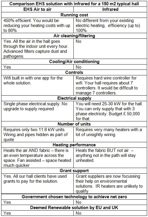 We don't provide legacy solutions, we provide state of the art air source heatpumps, they are some 4.5 times more efficient than IR heaters. The availability of grants for the heating solution would be important -