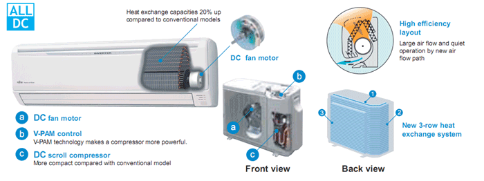 It has received a number of enhancements, important ones are larger indoor and outdoor heat exchanger, improved air flow and latest generation